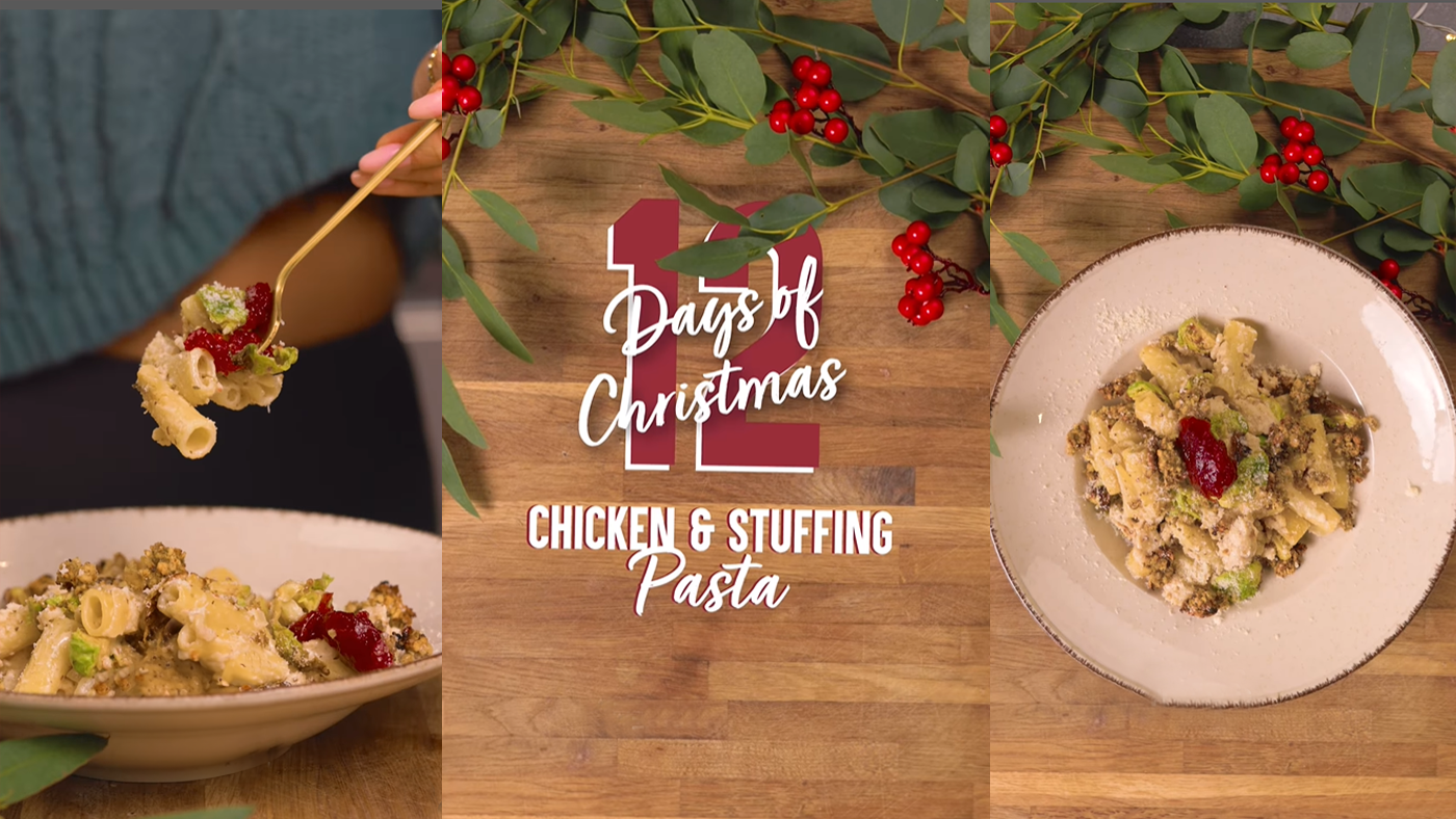 In a panic to make sure they have everything they need, people tend to go a bit nuts with their Christmas food shop, and there’s always at least one pack of stuffing left in the cupboard. If you always find yourself with leftover stuffing, we have the perfect recipe for you: Chicken & Stuffing Pasta!